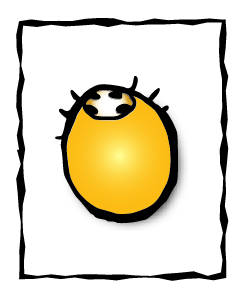(特徴:体長五ミリ。黄色くて楕円形で、顔に4つの黒い点。)